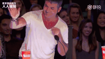 最后,毒舌评委西蒙(Simon Cowell)按下特许参赛者直接晋级的黄金按钮……(“黄金按钮”是《美国达人秀》从第9季开始启用的保送制度。任何评审只要按下“黄金按钮”,即便其他评审不同意,参赛者都可以直接晋级准决赛。)